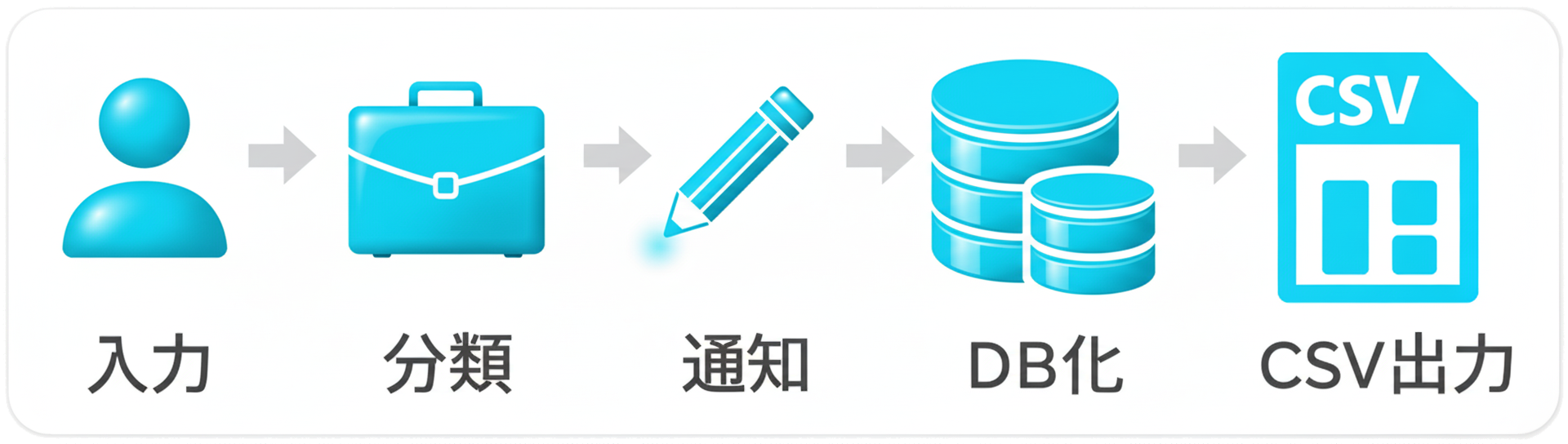 相談内容は自動で分類・整理され、担当者に即時通知。平均50分かかっていた初期ヒアリング準備が10分に短縮されます。
